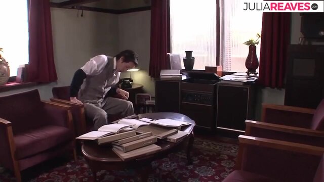 An Asian secretary with a hairy pussy gets brutally fucked by her boss. He slams his cock into her wet pussy and makes her squirt. He fingers her and spreads her pussy before filling it with a creampie.
